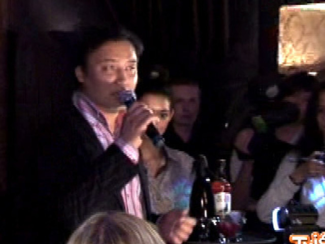 Александр Кан показывает, как пить коктейль "Легкой походкой", не теряя ее.