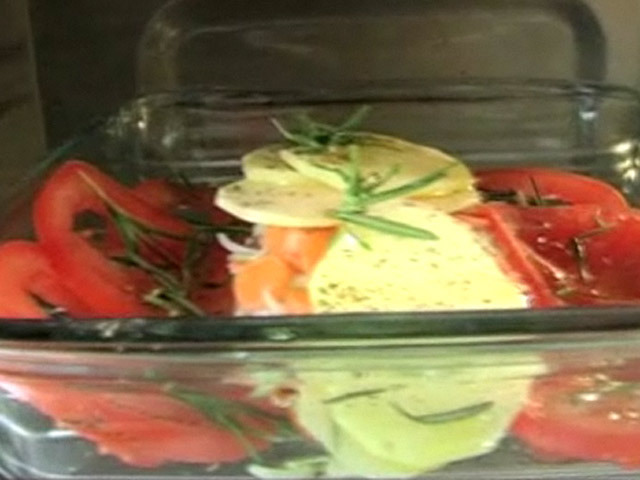 Низкокалорийный рецепт из баранины. 297 калорий.Состав: баранина — 130 гр;помидора — 1 штука;картофель — 1 штука;лук — 1 штука;морковь — 5 штук;розмарин — 1 веточка;соль, черный перец, оливковое масло.